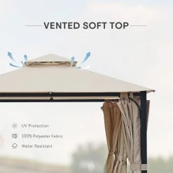 International Caravan 10′ Aluminum/Polyester Double-Vented, Drapes Square Gazebo, Dark Gray/Ruby Red
