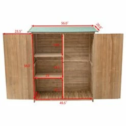 Gymax Storage Cabinet With Double Doors Solid Fir Wood Tool Shed Garden