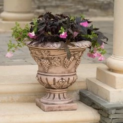 GDFStudio GDF Studio Nina Botanical Lightweight Concrete Chalice Decorative Urn Planter, A