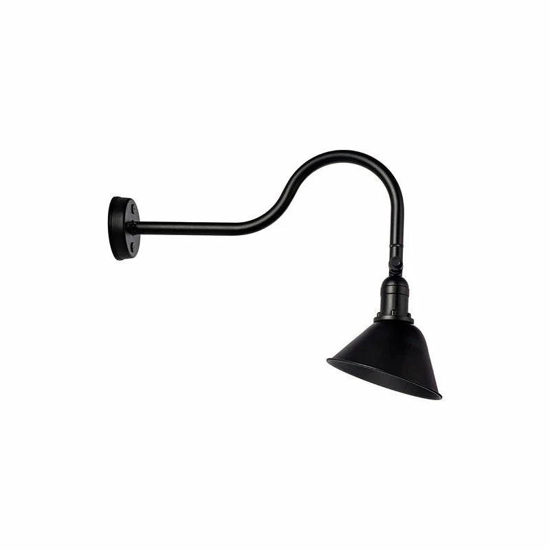 Does your outdoor lighting plan need a little direction? Meet the Gooseneck outdoor sconce, a durable, adjustable light that swivels to shed light exactly where you need it. This durable metal gooseneck fixture is modeled after retro designs used to illuminate signs on restaurants or warehouses to lend an industrial look to your front porch or backyard.