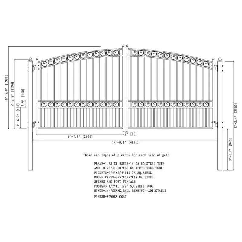 Are you seeking high quality ornamental wrought iron gates without the high price? We have the perfect alternative for you. We offer designs you will not find anywhere else! All of our gates capture the classic elegance of wrought iron gate designs and offer affordable prices. Our quality gates are all powder coated and galvanized for years of trouble free good looks and security. 2 Posts and 4 Hinges Included! Replacement warranty 10 years. We use Duplex System when make our gates: Galvanized Steel and Powder Coated Paint.