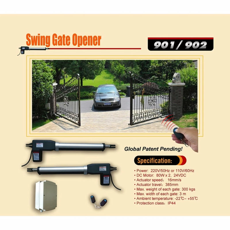 ALEKO GG900/AS900 Dual Swing Gate Operator is designed for residential/commercial applications. Stay warm and dry in your vehicle. This Dual Swing Opener will handle dual swinging gates up to 20 ft in length and weighing up to 900 lb (10 ft and 450 lb per panel). ALEKO GG900/AS900 has powerful 24VDC motors, which provide exceptional starting torque and feature soft start/stop operation. This promotes longer gate and operator life, as well as dependable performance.