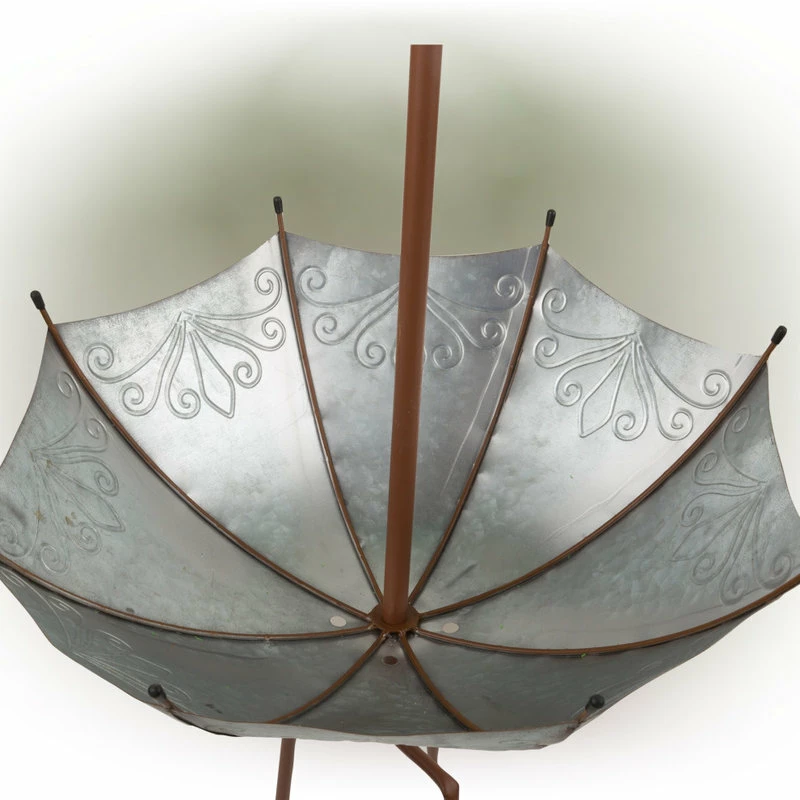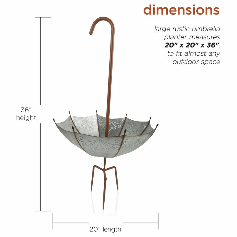 - Rustic finish with multi-pronged stakes at the bottom keep the umbrella steady