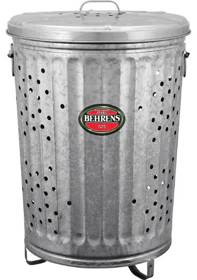 Ideal for composting, burning rubbish. Four legs keeps can off ground for better air flow. Deep swedging adds strength. Features large handles for easy carrying. Weather resistant and rodent proof.