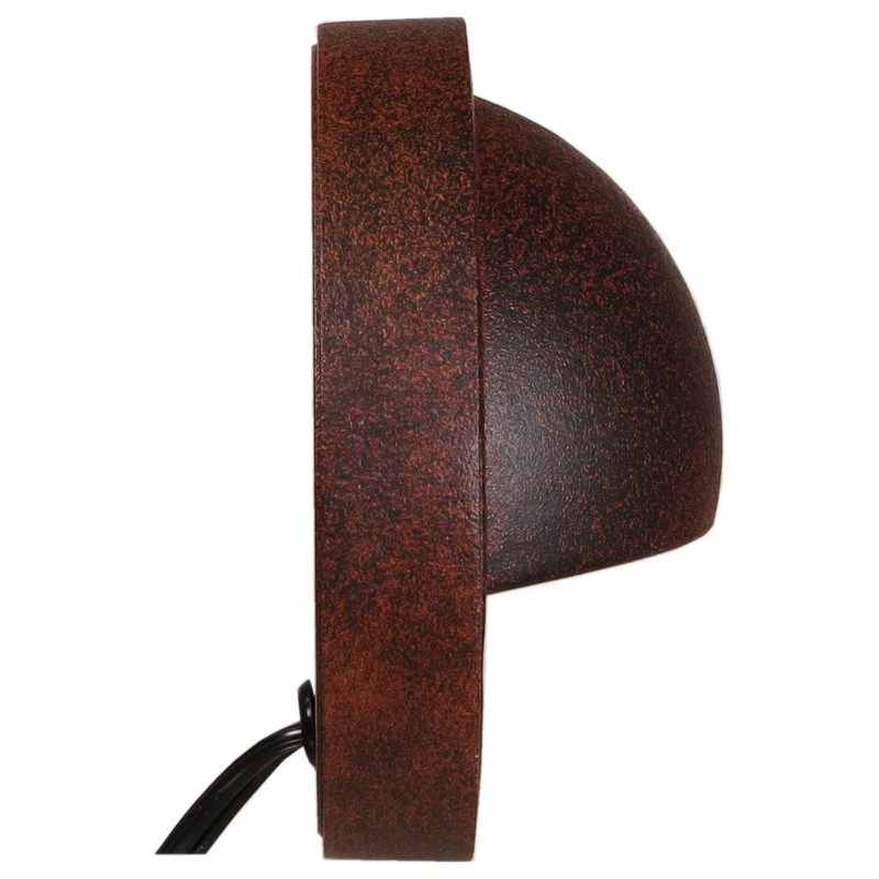 Best Pro Lighting’s contractor grade Step/Deck Light in Powder Coated Rust Finish will give a low profile illuminating accent to your stairways or pathways. Gives off light in a 60° spread, it has mounting holes on the underside of the housing so you can place it on walls or mount it on wood decks or concrete retaining walls (mounting hardware not included) or any indoor or outdoor stairwell that needs illuminating. Solid cast aluminum construction in a powder coated finish that is weather resistant, has a frosted glass lens inside the round helmet housing. This fixture requires the usage of a Low Voltage (12-Volt) lighting transformer. Wire nuts and connectors are not included.