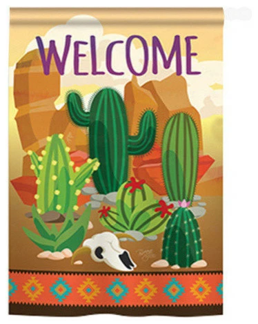 Breeze Decor Southwest Cactus 2-Sided Vertical Impression House Flag