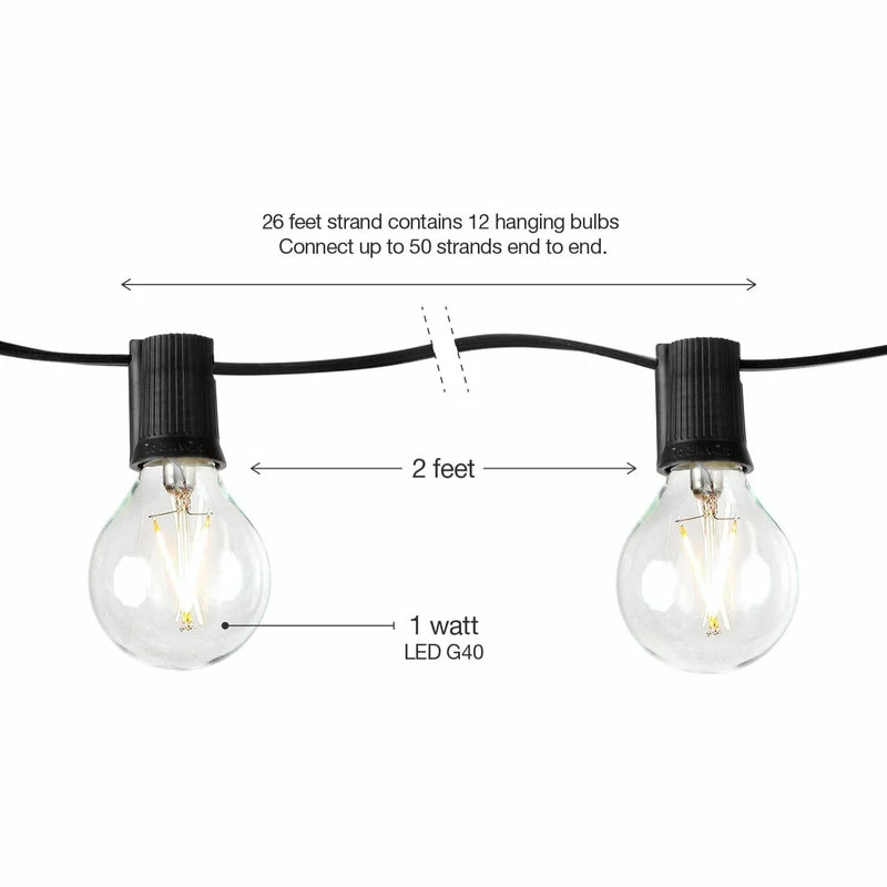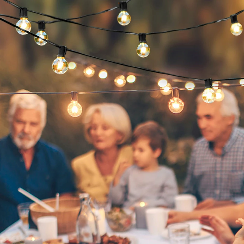 LED PLUG-IN MARKET LIGHTING SUITS EXTERIOR OR INDOOR SPACE: Brighten a bedroom with a strand of g40 electric rope lights, or run them up in the gazebo. You’re sure to get compliments either way. And you’ll impress not just with your style, but also your clever choice. These use LED technology: save 85% on your energy bill vs incandescent, and the globes never get hot. The globes produce warm white (3000K) lighting.