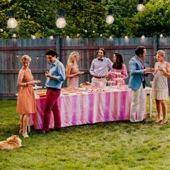 HANG A CANOPY OF GAZEBO GLOBE LIGHTS: SET THE MOOD FOR A WEDDING OR PARTY: Go retro with your outside celebration: festoon a decorative carnival/market look with scalloped strands. Or go more modern/minimalist with taught, straight ropes across the garden. What’s your style?
