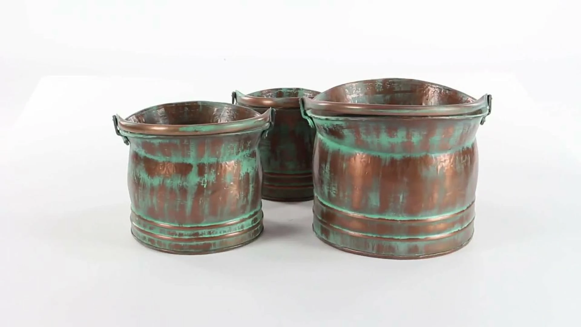 These stylish copper plant holders are great additions to gardens, patios, and living spaces with a rustic or farmhouse theme. This item ships in 1 carton. Please note that this item is for decorative purpose only and is not food safe. Suitable for indoor and outdoor use. Maximum weight limit is 20 lbs. Made in India. Planters do not have drainage holes but they are not watertight. This planter comes as a set of 3. Rustic style.