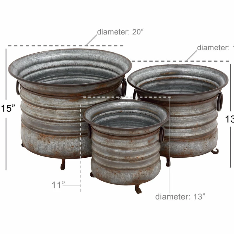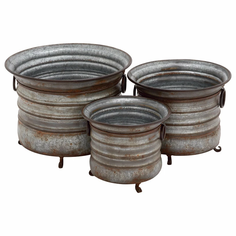 Brimfield & May Set Of 3 Grey Metal Farmhouse Planter, 20″, 16″, 13″ 20267