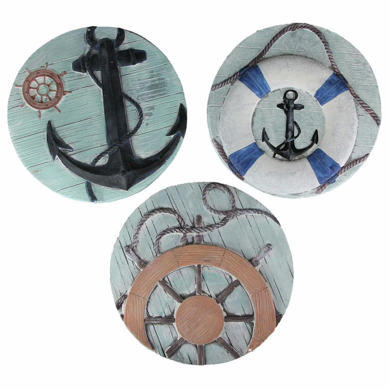 Bring some salty sea style to your home and garden with this set of three concrete stepping stones. Crafted from sturdy concrete and depicting various equipment from a sea-bound ship, these stepping stones are pleasantly detailed and durable decorative pieces that are great for accenting your indoor or outdoor living space. Sporting a hand-painted finish, each stone has a built-in hanger on the back, so they can be used for either enhancing a garden walkway or displayed as mounted wall decor with a simple hook or screw (not included). Each of the stones measures a 10-inch diameter face, and a 1-inch depth, making this set a great addition to your lawn and garden set up, or hanging in your living room, kitchen, bedroom, or bathroom.