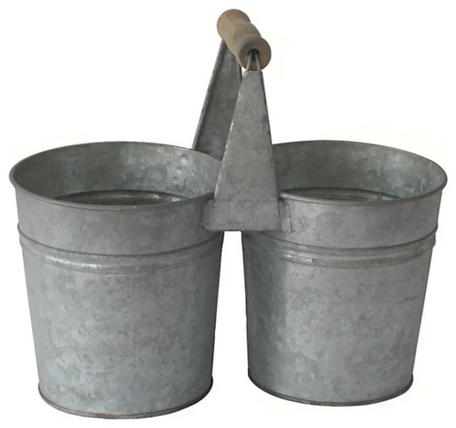 Enhance your garden or patio space with the Galvanized Metal Double Pot. A charming outdoor piece, the Galvanized Metal Double Pot is crafted from galvanized metal and features two garden pots and a wood grip handle. Simple yet eye-catching, the Galvanized Metal Double Pot is perfect for showcasing your favorite plants or flowers. Whether you utilize this garden pot for storage or simply as a decorative accent piece, the Galvanized Metal Double Pot is a lovely addition to your garden decor.