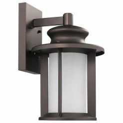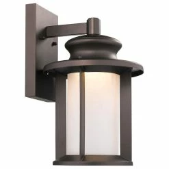 This 1-light outdoor LED wall lantern features an oil rubbed bronze finish that will complement many transitional decors. The clean lines of the steel frame adds interest while the frosted water glass softens the light and gives a whole new look to your outdoor decor.