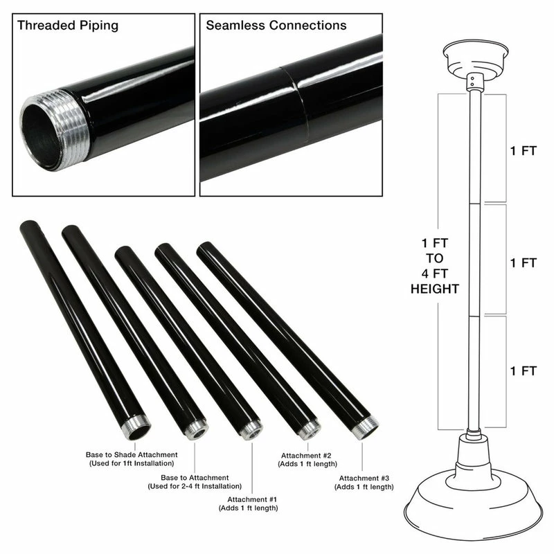 The hanging nylon cord is rated for indoor use only, and is adjustable for a length up to 6 feet. For outdoor use, the Peony can be equipped with one of Cocoweb’s versatile multi-length downrods (available in black, mahogany bronze, and galvanized silver), which holds the shade steady to a length of up to 4 feet.