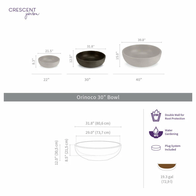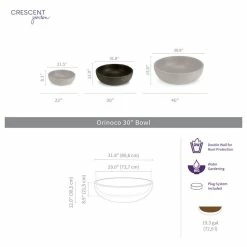 Creative options are limitless with these attractive, functional, and massive Orinoco bowls. Whether you create tiered garden by stacking the three sizes or design your own unique fountain, you can rely on their durability to last throughout the weather extremes. An ideal bowl planter for succulent gardens too.