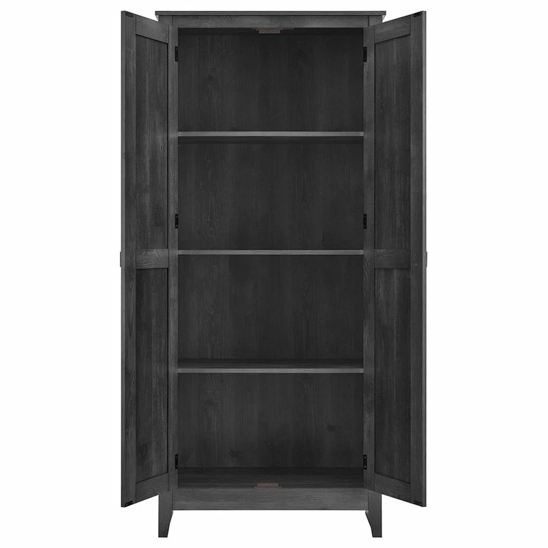 - Behind 2 doors are 4 shelves (2 adjustable) to keep items organized from office supplies and clothing to nonperishable foods and extra linens