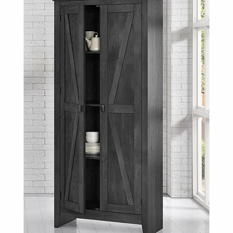 EFurnish Farmhouse Storage Cabinet, Rustic Barn Design With Adjustable Shelves, Gray