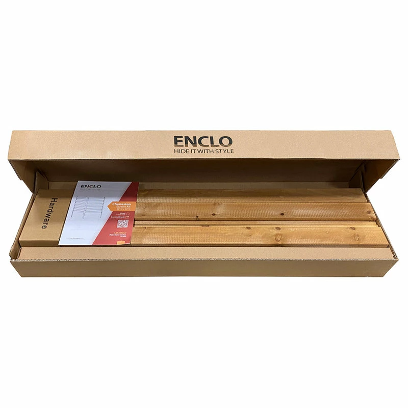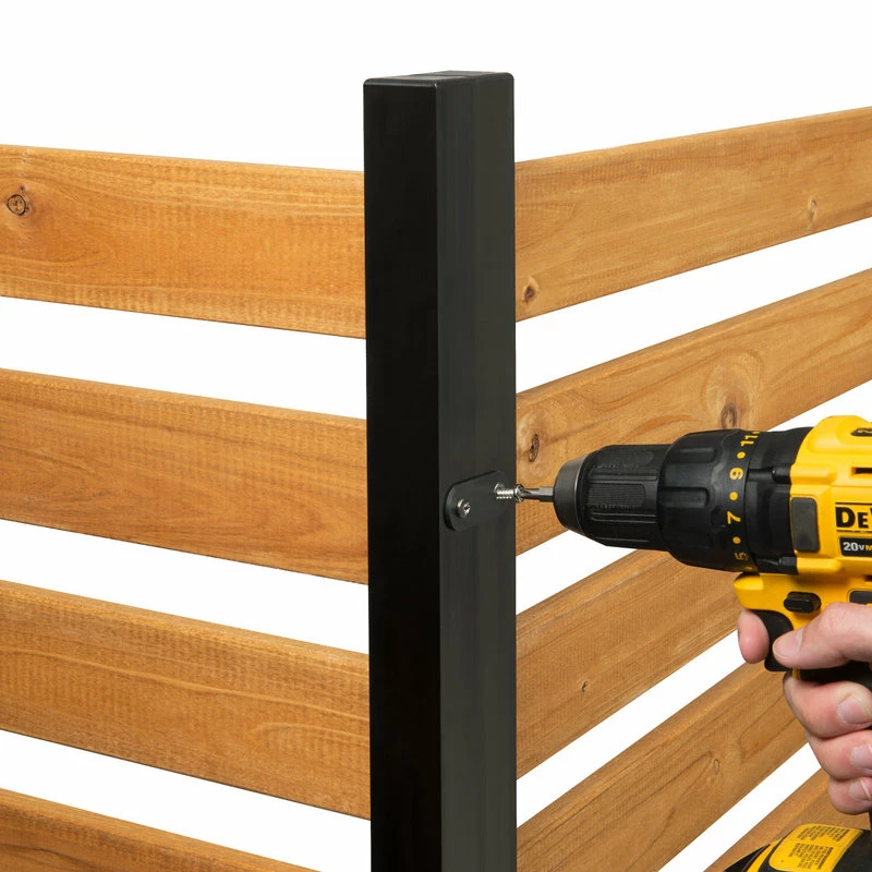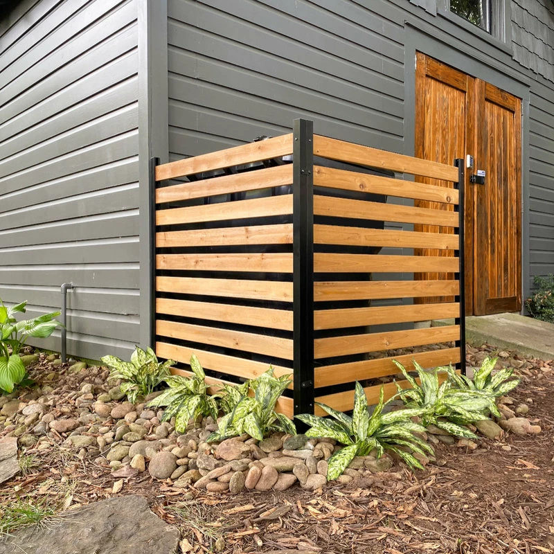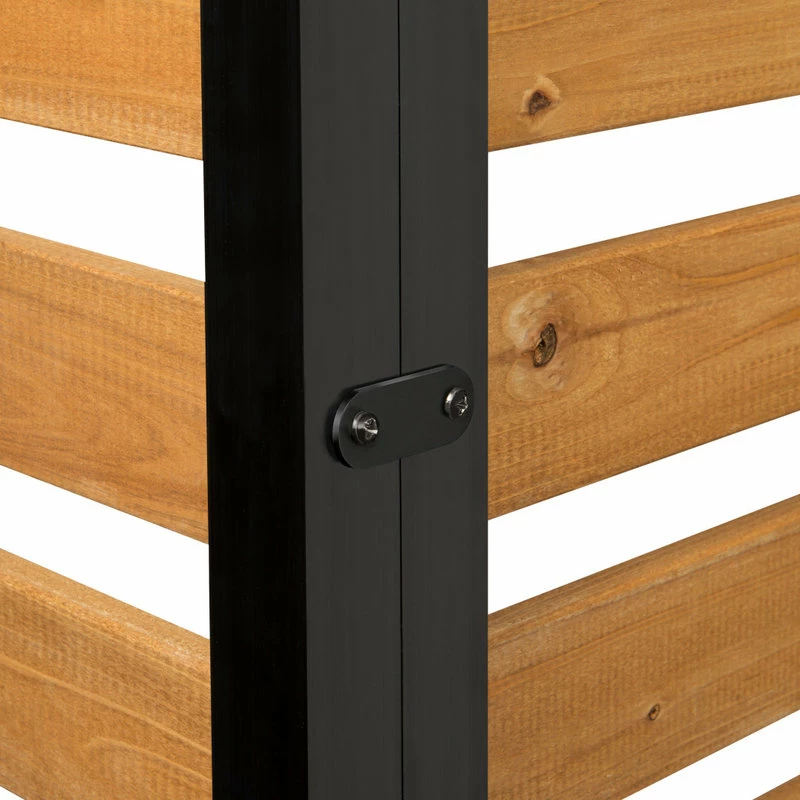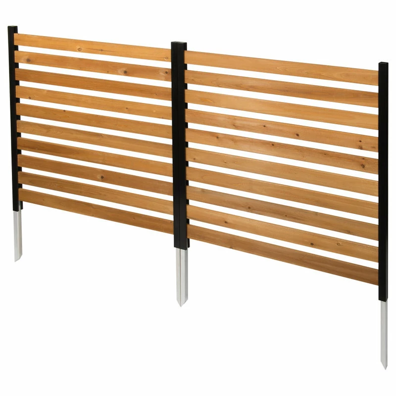 Hide your unsightly yard items such as trash bins or air conditioners with this No Dig Charleston Wood Privacy Screen. Not only will this screen hide your unmentionables, but it will also add curb appeal to your home. Crafted from 100% FSC certified cedar lumber and powder coated aluminum, this screen looks the same from both sides. Slatted to allow air flow for air conditioning units. Each kit comes with 2 sections to make a right angle. Additional boxed sets can be purchased if you would like to create a bigger enclosure. Please note individual panels and parts are not for sale.