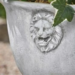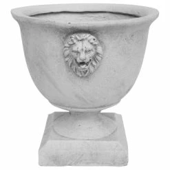 - ELEGANT STYLE – Antique white lightweight concrete gives this planter a high-end, faux-stone appearance. This piece boasts a Roman design with lionhead accents and a square base.