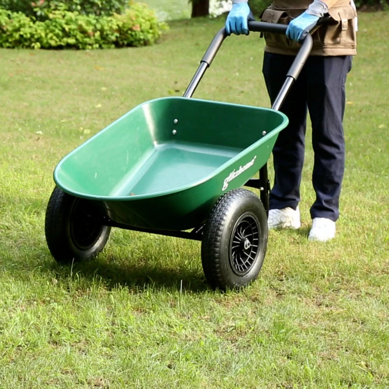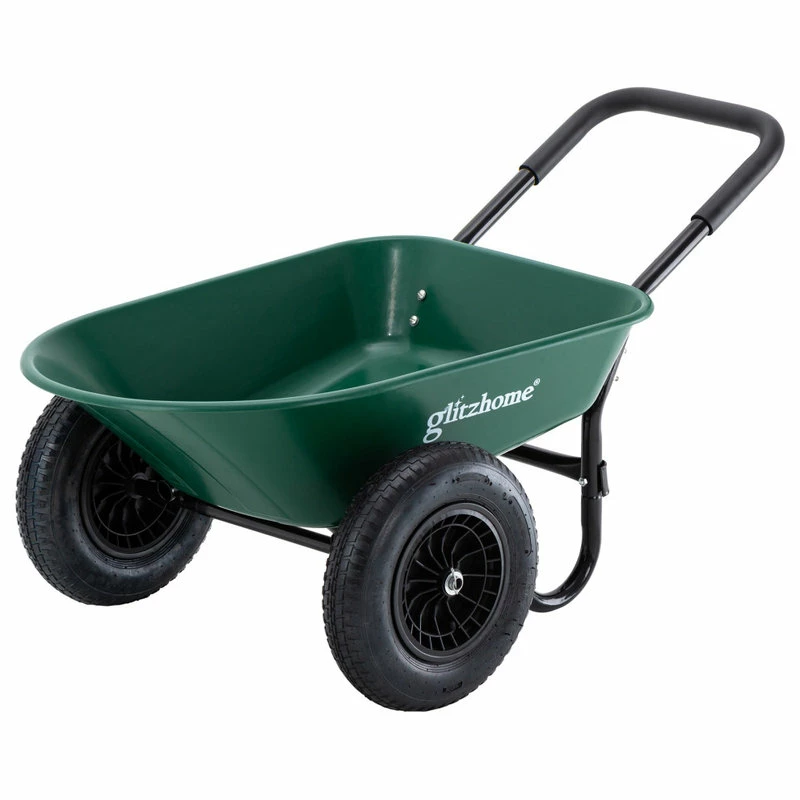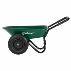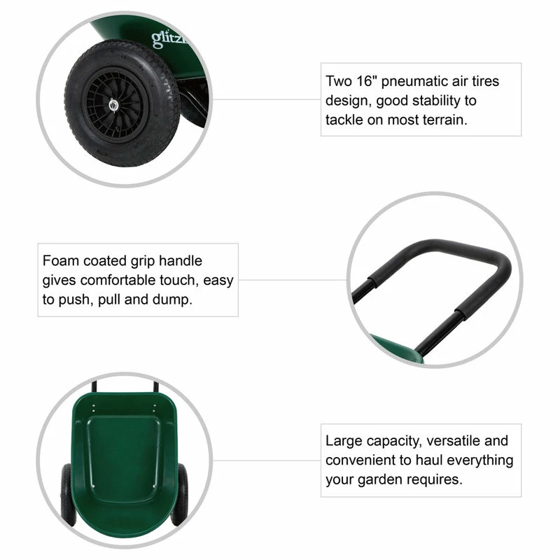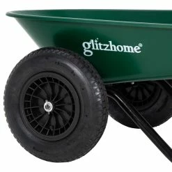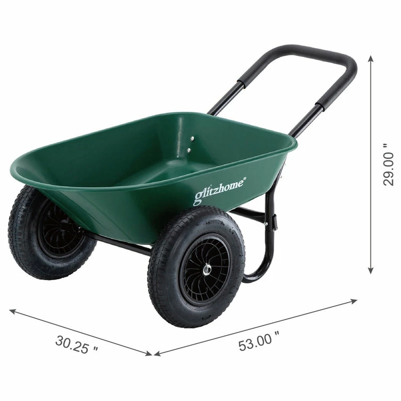 Get ready to own this heavy-duty wheelbarrow utility dump cart o make life easier. The deep volume with an easy-to-dump design makes it versatile and convenient to haul all the projects that your lawn, garden, backyard or any outdoor space requires, such as soil, gravel, mulch, wood, etc. This multipupose cart helps get the outdoor jobs done without the hassle. It is worthy of your exploration and discovery!