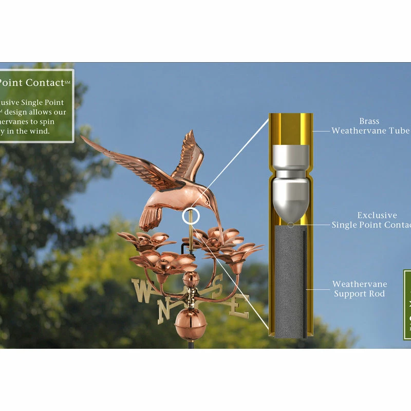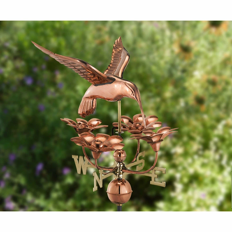 Good Directions, Inc. Hummingbird With Flowers Weathervane, Pure Copper
