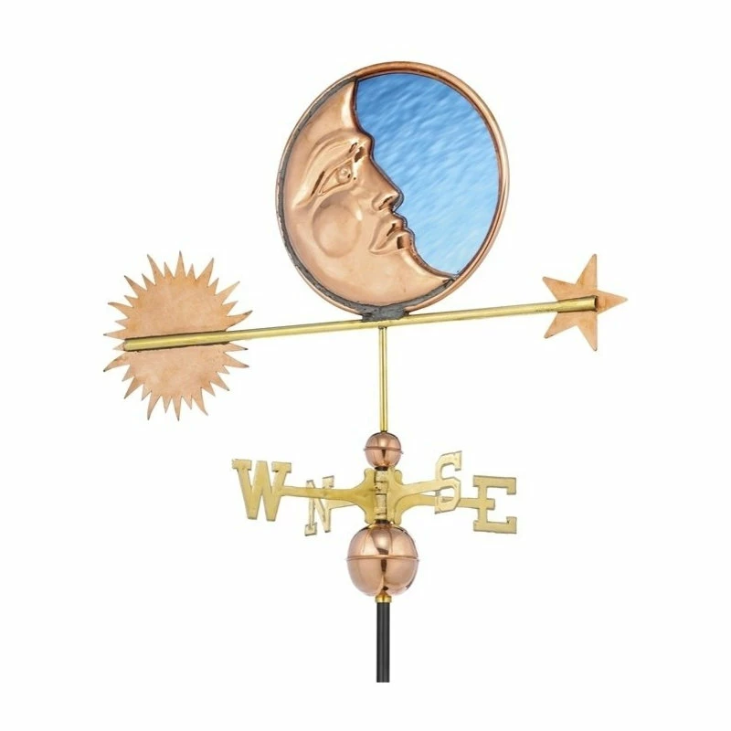 Good Directions, Inc. Stained Glass Moon Weathervane, Pure Copper