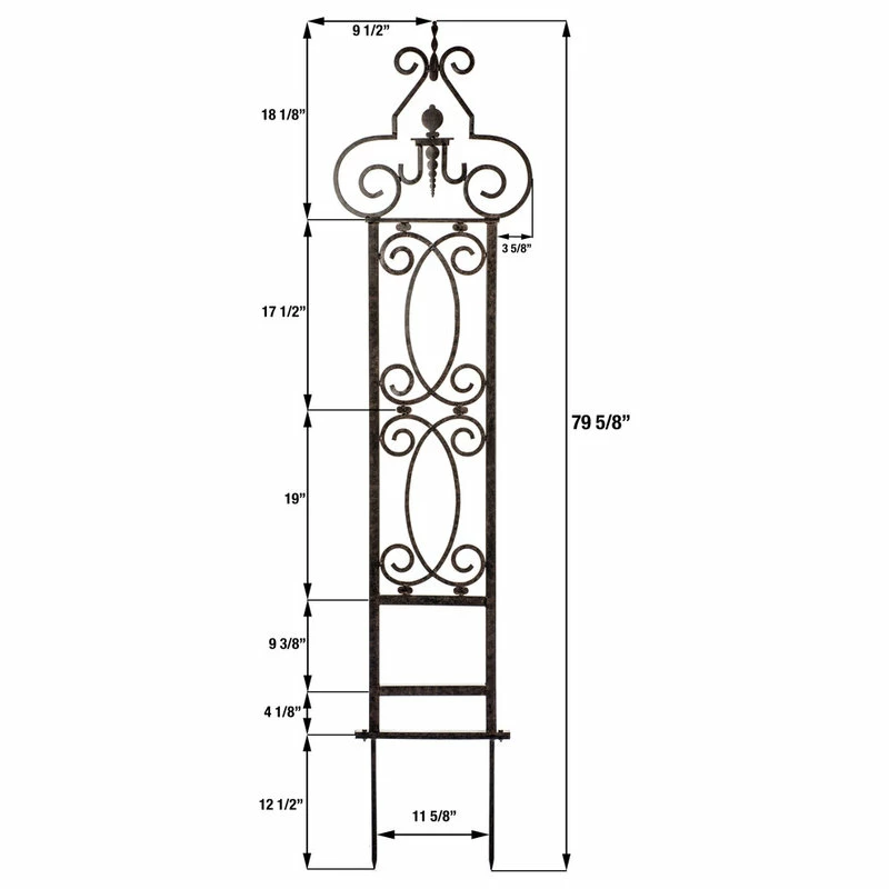 SECURELY PACKAGED AND BUILT TO LAST – Professionally packaged trellis arrives in three pieces requiring assembly as shown in photo. The iron trellis is pleasing to the eye and perfect for growing vines or purchase a pair to grace an entryway. With dimensions of 19 inches wide x 67 inches high, (plus 12 inch spikes), this heavy-duty trellis offers a secure anchoring system that will support plant material.