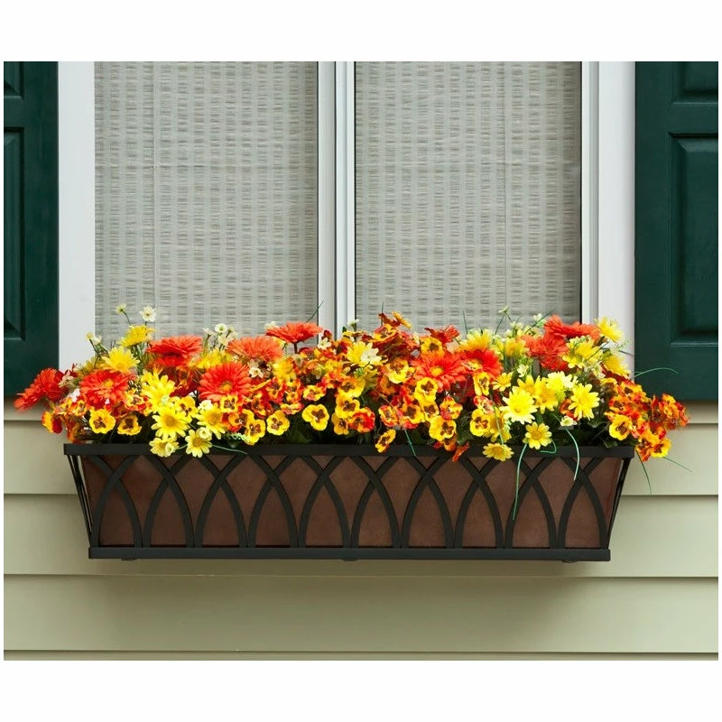 Hooks And Lattive Arch Decora Window Box With Bronze Tone Liner, 36″