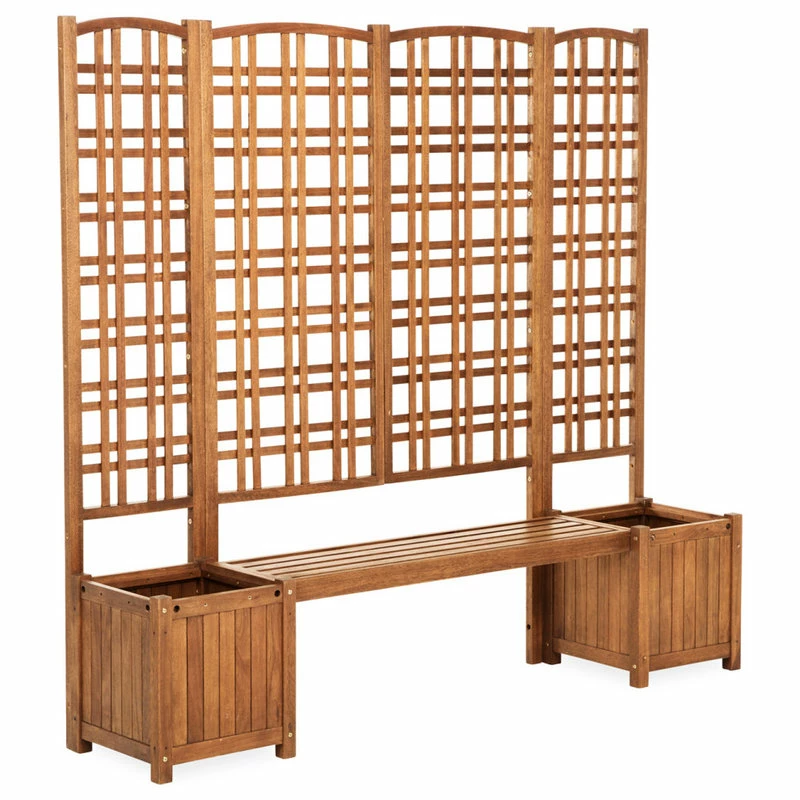 This outdoor safe eucalyptus privacy trellis can be used stand-alone or with the planters and benches to create a shaded area, sold separately. This collection is versatile, made up of configurable pieces.