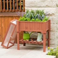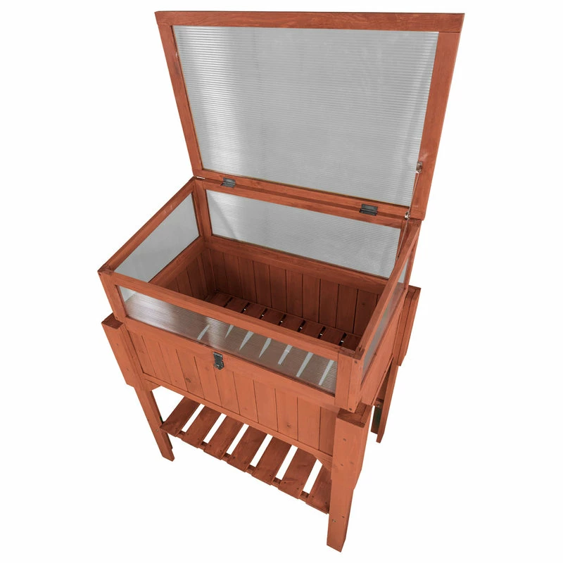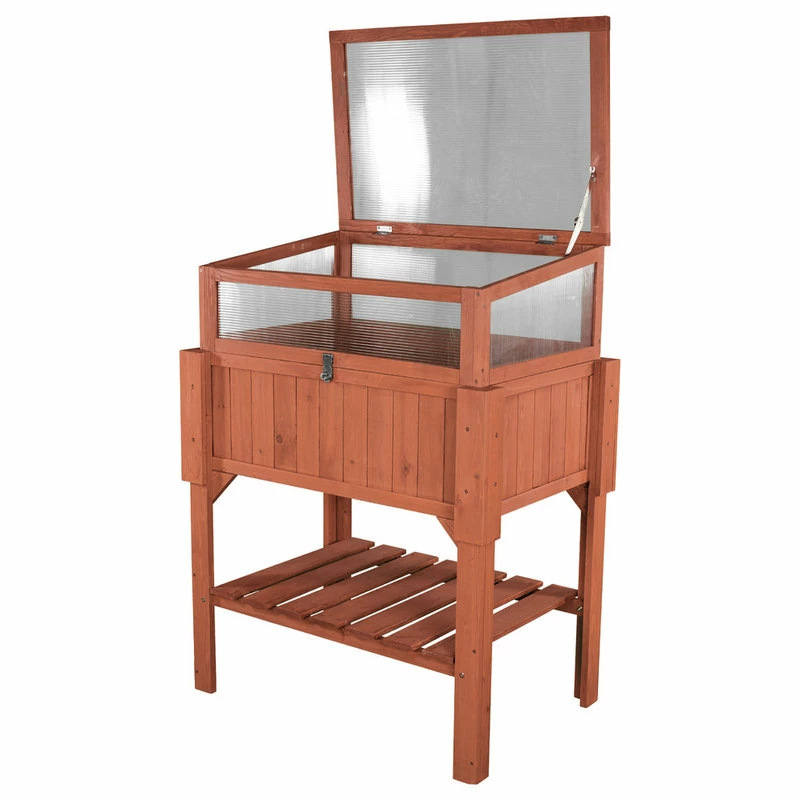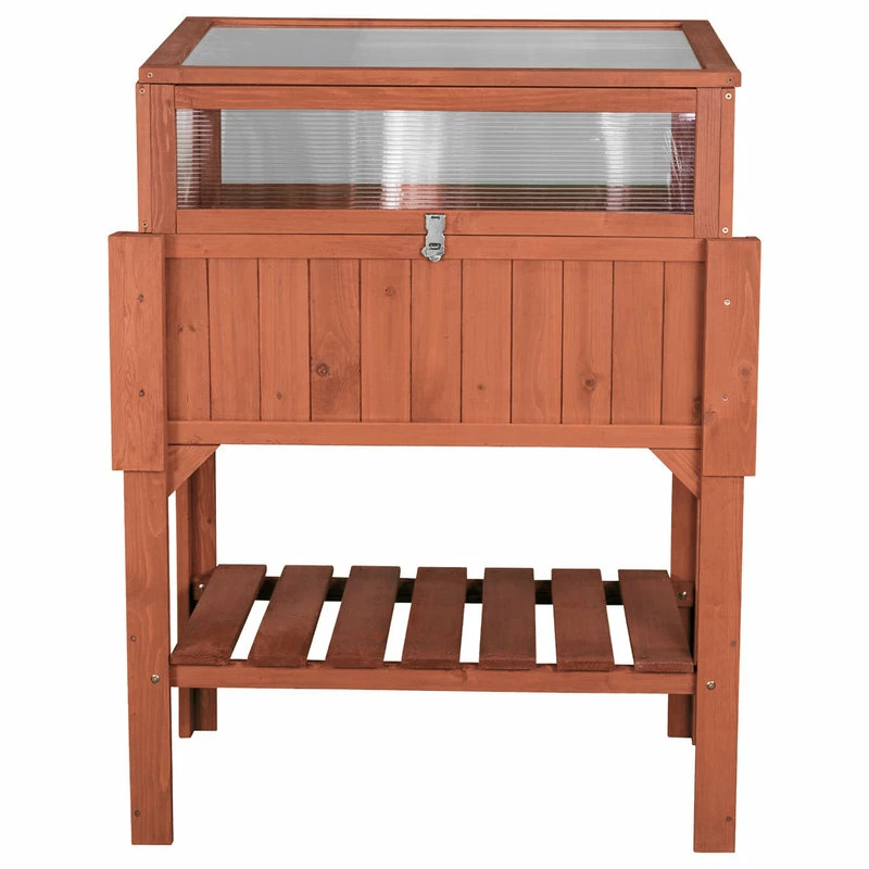 Mini raised greenhouse with lift-open roof makes a garden productive. Imagine an easy-to-manage greenhouse. We did and made wishes come true. Despite its miniature size, our Raised Greenhouse features a roomy rectangular compartment, four windows, and a lift-up lid. Use the lower shelf to store planting equipment or display additional greenery. Perfect for urban gardening environments or anyone wanting to improve their green thumb.