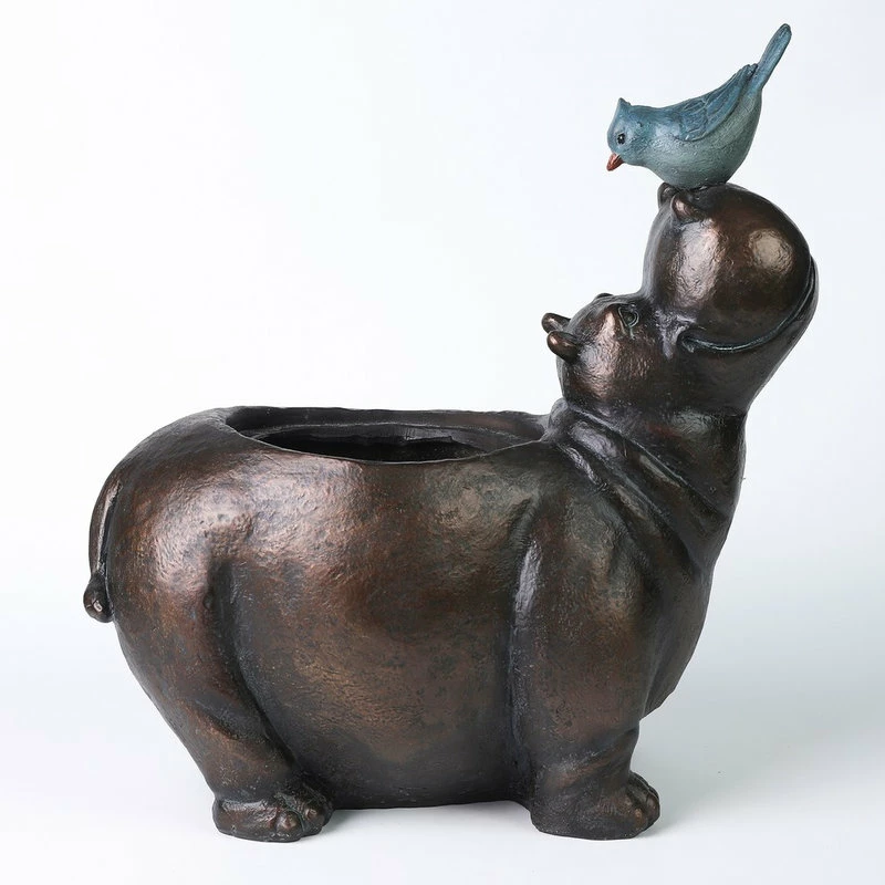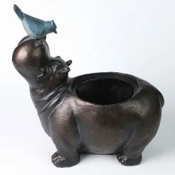 Perch this hippo and bird planter on your front porch, patio or deck, or in your garden, and they will be right at home, outdoors or in, and happy to add some sweetness to your decor. The hippo planter features a sweet blue bird on its nose, and has one open round planter that is perfect for succulents, herbs, and other small plants. The hippo flower pot planter is crafted using magnesium oxide material that is durable for the outdoors.
