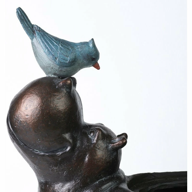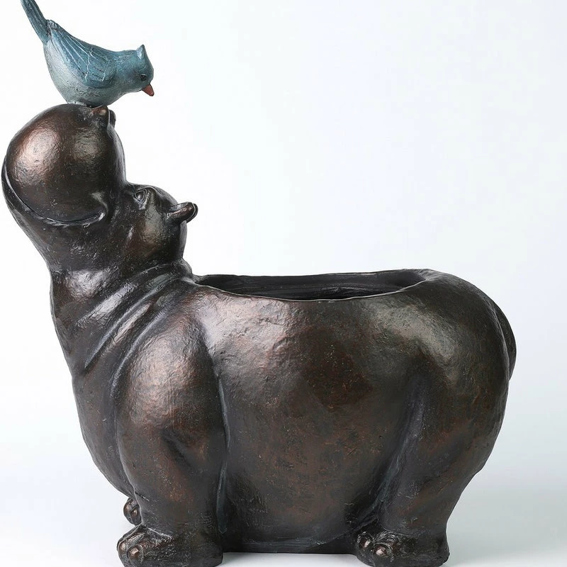 LuxenHome Brown Hippo And Blue Bird MgO Flower Pot Planter