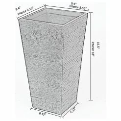 This tall and distinctive planter is the perfect addition to any front entrance. This design showcases a modern, textured square tapered design, finished in a neutral hue perfect for the modern home (or modern home‘s exterior). Designed to live outdoors, it is crafted from weather-resistant magnesium oxide that does not mind UV light beaming down or rainstorms rolling through, this planter is durable and designed for all seasons. The planter includes a drainage hole so you can avoid over watering your plant. It also includes a drainage plug, so you can place it indoors to freshen up your home as well! To clean, just spray with a hose and wipe it with a dry cloth.