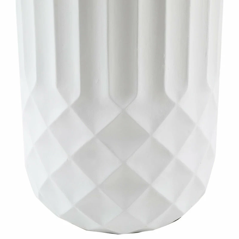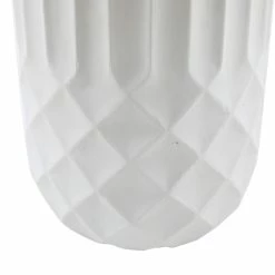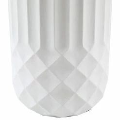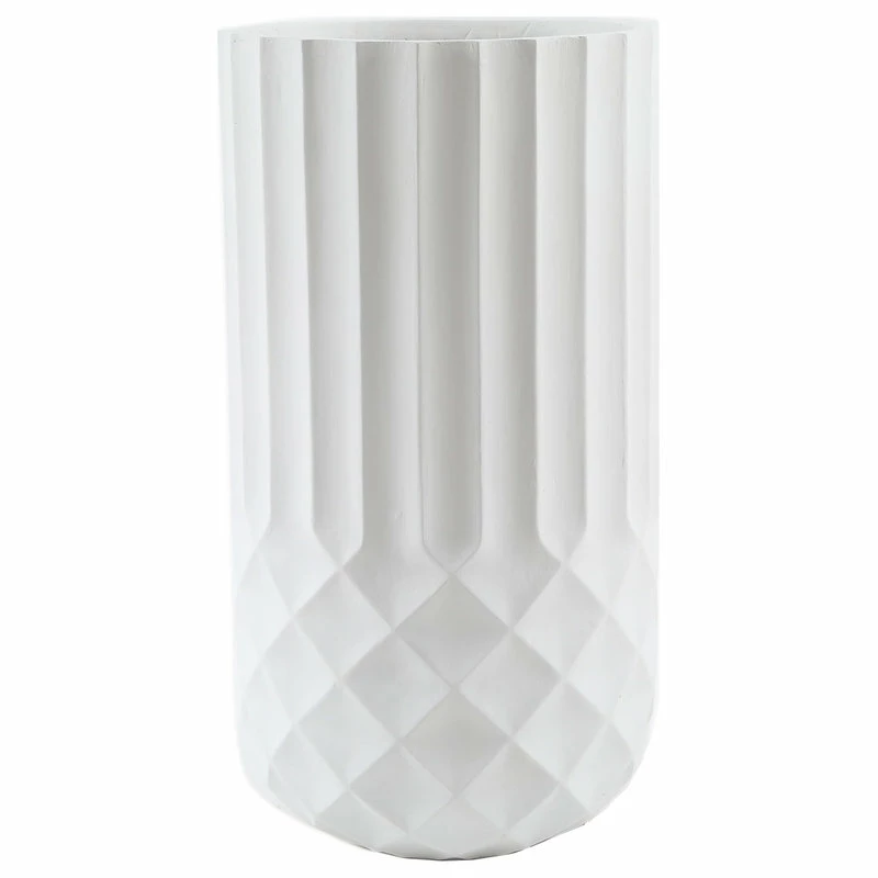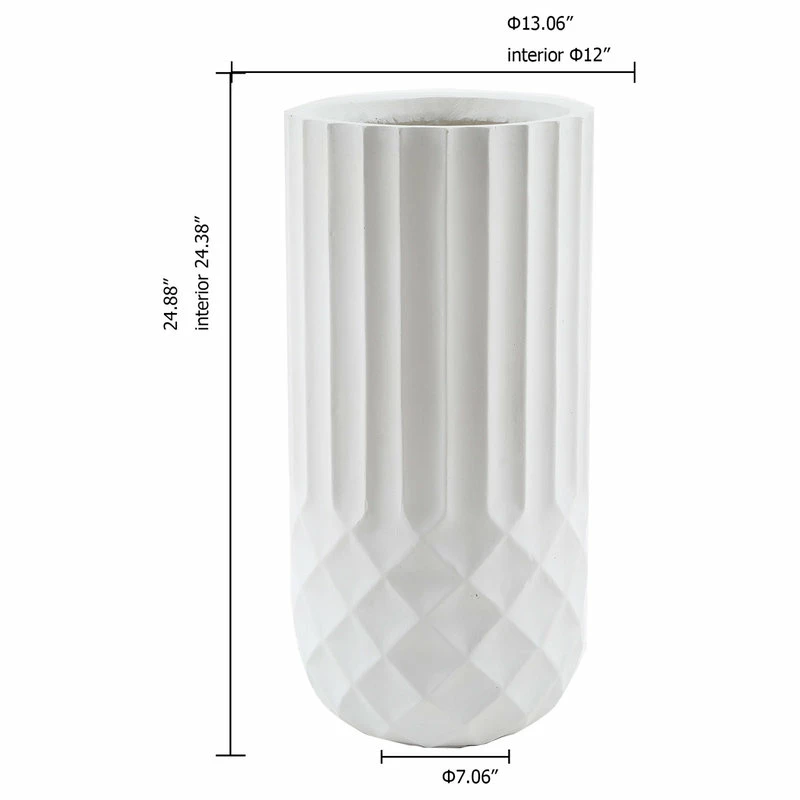 Whether you’re adding a botanical display, or putting the finishing touches on a patio garden, this contemporary style planter is a charming addition to your home. Enjoy the beauty of your plants in this brilliant white 24-inch tall round planter. The planter has a two pattern design giving it depth and dimension. The raised vertical lines at the top make the planter look taller, and draw your eyes upward to admire you beautiful plants and flowers. The diamond pattern at the base of the planter is visually appealing and offers a uniqueness to the planter. Crafted from magnesium oxide, the planter is made for the outdoors with its weather and UV resistant finish. It includes a drainage hole to help prevent over watering of your plants. It also includes a drainage plug for your convenience. Bring it inside, and display this beauty in your entryway, dining room, or family room.