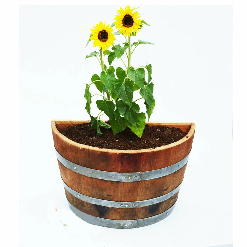 These wine barrel planters are designed to be placed against any kind of wall or structures allowing you to accentuate your garden. We use authentic oak wood wine barrels with quality and value in mind for your gardening needs. Unlike whiskey barrels, classic wine barrels are much better built, and wrapped with three galvanized steel bands to prevent rust which are seen frequently in whiskey barrels. Planters are made of all oak wood barrel front and bottom with a cedar wood back. A wonderful addition to your home and garden.