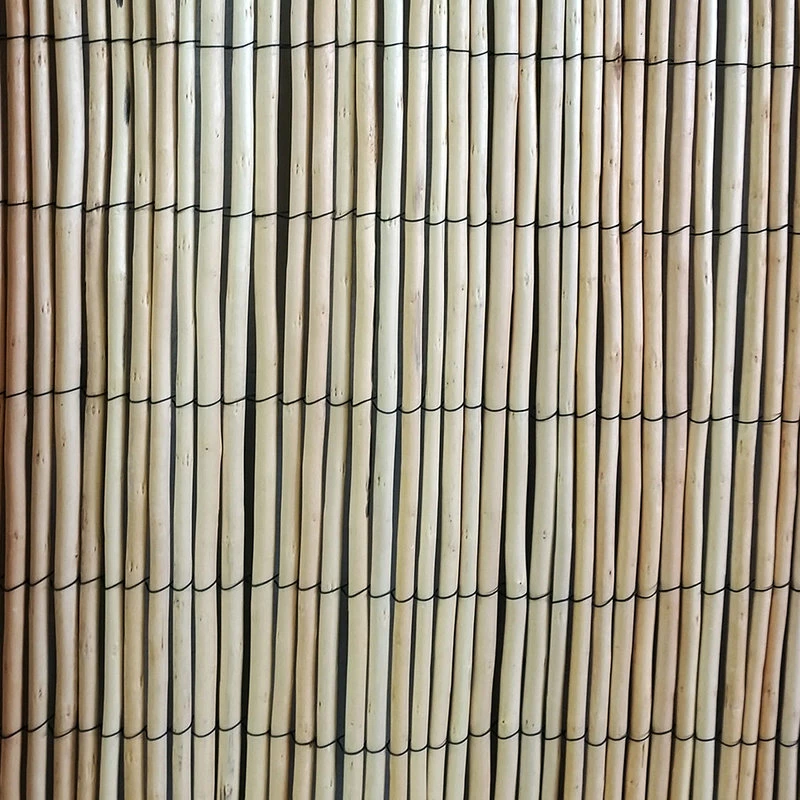 Willow sticks are harvested every one or two years for fencing material making the classic peeled willow fences one of the most environmentally friendly and ecologically sustainable materials as it is zero carbon releasing compared to metal and plastic fencing. Our classic peeled willow fences are constructed with only mature willow sticks that are thick enough to have their skin peeled and to go through the process known as high pressure steam carbonization, resulting in a polished mahogany tone that resembles an aged smooth log house type texture. They are then woven together with black nylon coated wire which allows these carbonized willow sticks to last longer in outdoor conditions, as they are rust proof. Easy to install, especially around a corner or any kind of non-linear fencing.