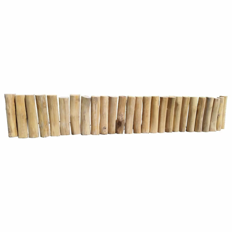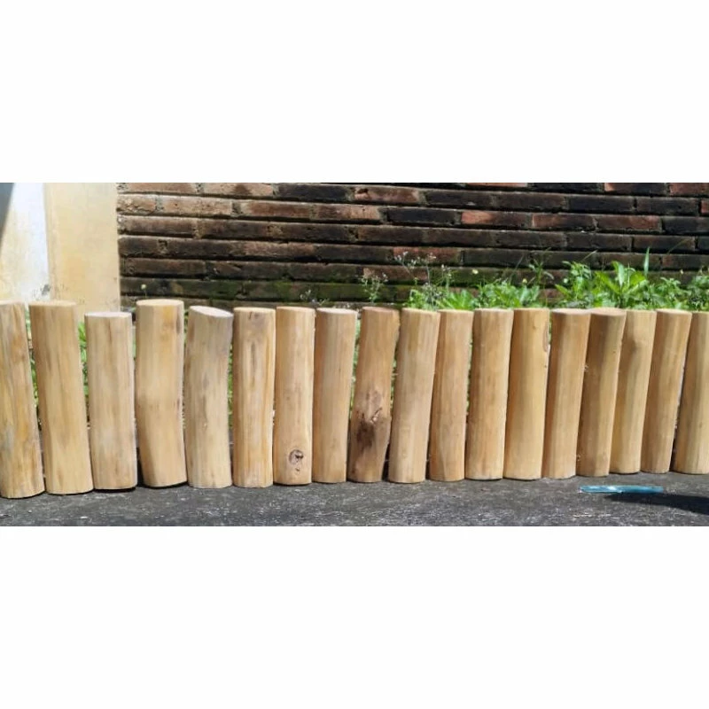These unique wood edging is exclusively from Master Garden Products, handcrafted by Indonesian craftsmen with environmental friendly plantation teak wood. The whole log is about 2″ to 3″ in diameter. The even top teak log edging are 10″ in height. Hand polished with outdoor sealer for extra protection. Each one is 10″ high and 60″ long, and will make a wonderful addition to your home and a garden.