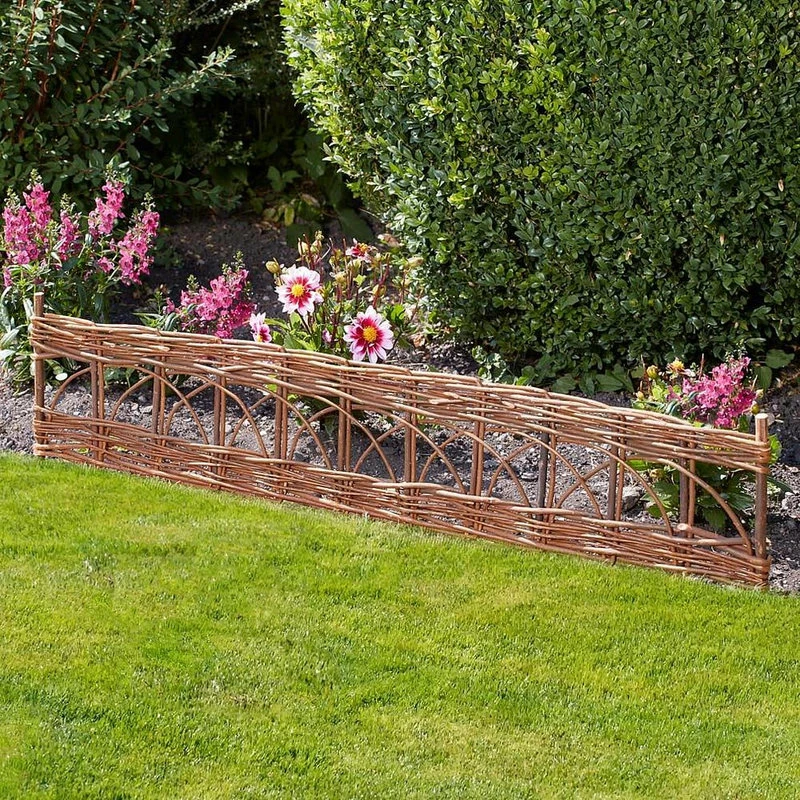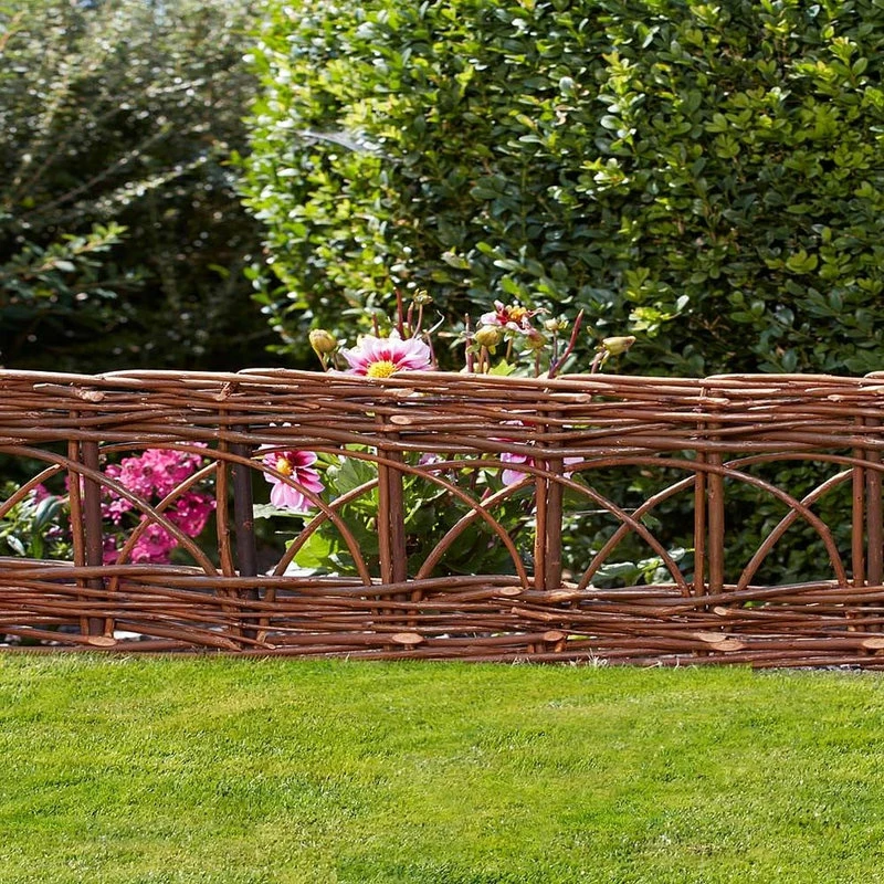Used commonly in European gardens, these natural willow edging kits are ideal in the outdoors where it’s needed to define garden areas, or use them to separate walkways. Some of our edgings are made from tightly woven canes or saplings with integrated lattice designs, while others have a rustic classic divider design. All are economically sustainable and environmentally friendly. They are held up by sturdy legs that push easily into the ground. Optional pressure treated wood sticks may be required to support the panels depending on the ground’s condition. To ensure durability of this natural willow product, you can put a coat of linseed preservatives with an oil base as yearly maintenance.