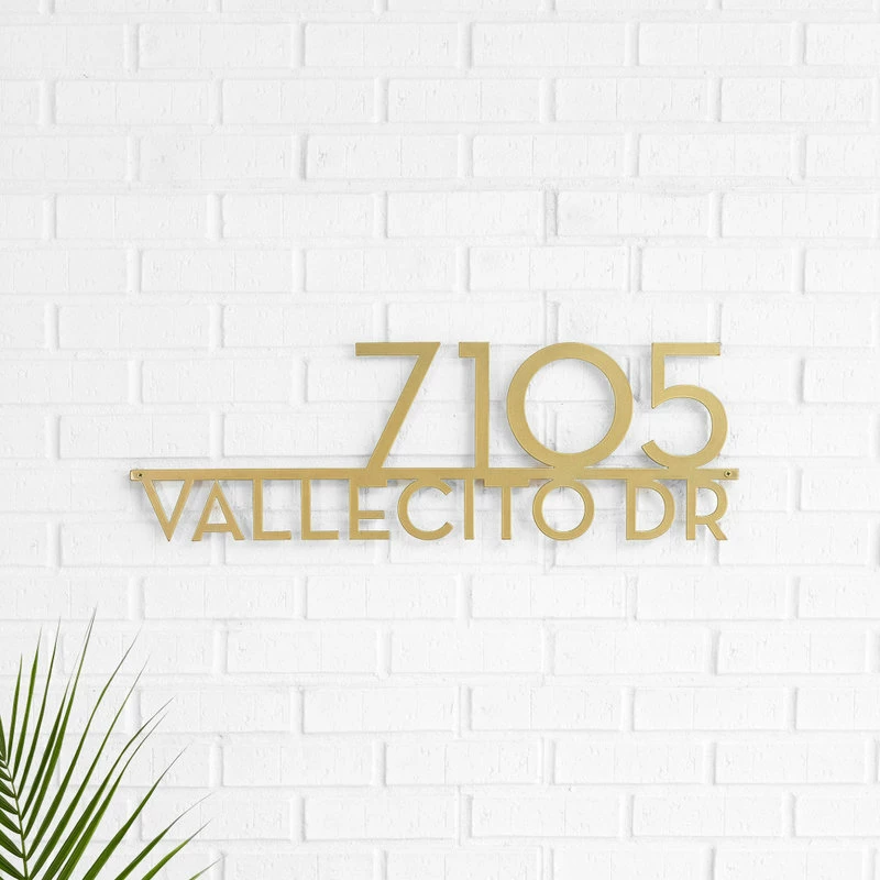 Mod Mettle Address Sign W/ Street Name, Brass, 5″h Numbers, Palm Springs Font