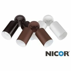 The NICOR 150-Watt outdoor Double-Cylinder Flood Light features two fully adjustable heads, independently directing light where it’s needed. The surface mount security light is the perfect solution for lighting those dark, hard to see areas. The 150-Watt flood light is bright enough to light large areas to provide safety, security, and general area lighting at night in both residential and commercial settings. The weather resistant powder coated aluminum ensures a dependable, long lasting life span. This 150-Watt Double Cylinder Flood Light is available in Black, Bronze, and White. It’s Wet-Location rated for outdoor use and does not require tools for changing the bulbs. Protected by NICOR’s 1 Year Limited Warranty. Requires two 150-Watt Bulbs, not included.