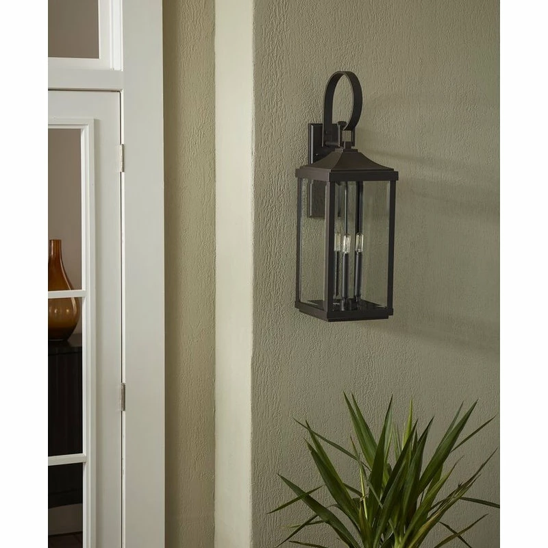 Elongated frames capture the romantic charm of vintage gas lanterns. Inspired by a stroll down a Charlestonian street bearing the same name, the three-light wall lantern in the Gibbes Street outdoor lantern collection features clear beveled glass and an Antique Bronze finish. Wall, post and hanging lanterns complete the family.
