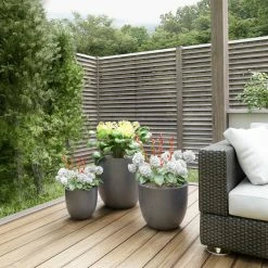 Bring a modern and contemporary charm to your patio, deck or garden with the 3 Piece Fiber Clay Planter Set by Pure Garden. Each planter in this set is made of a mix of clay and fiberglass to be a lightweight alternative to concrete and for durability in almost any climate and weather condition. This set of pots is hand finished for a unique look that is sure to complement almost any home decor. Each pot features drainage holes so that your plants aren’t damaged by excess water in the soil. These planters can be used outdoors on your deck, patio or in your garden beds and indoors with a saucer or plate to catch excess water. Each pot in this set is sized differently so you can choose the correct planter for your needs.