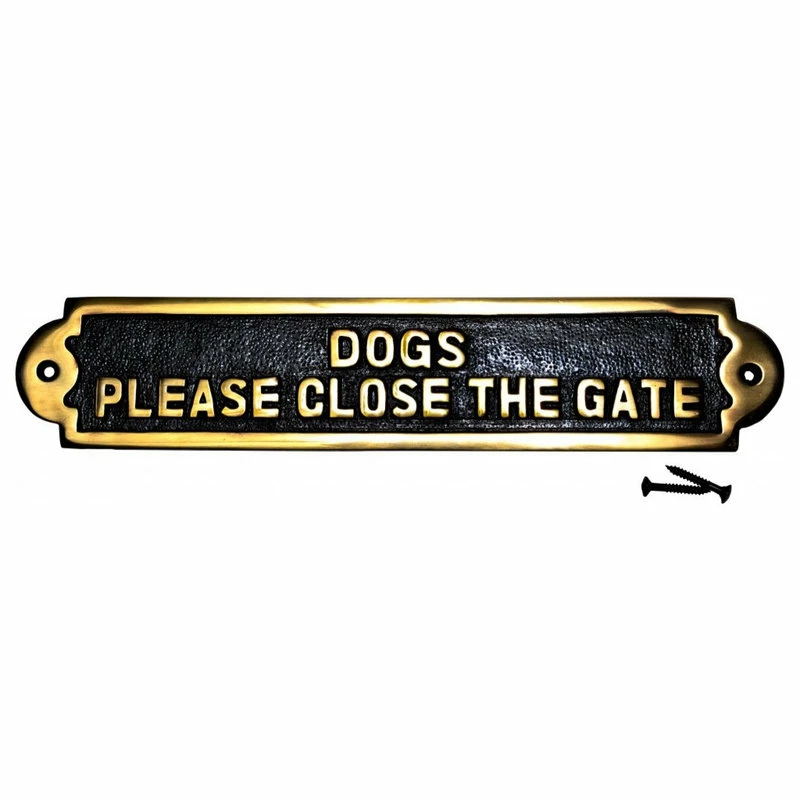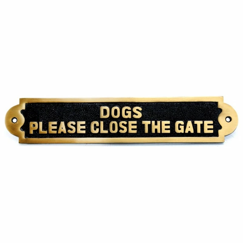 Item 17130 HEAVY DUTY SOLID BRASS – DOGS PLEASE CLOSE THE GATE – SIGN PLATE