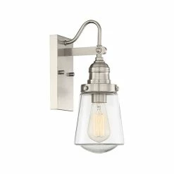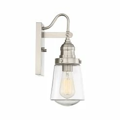 The Savoy House Macauley Outdoor Wall Sconce salutes classic illumination with its exposed bulb style and satin nickel finish.