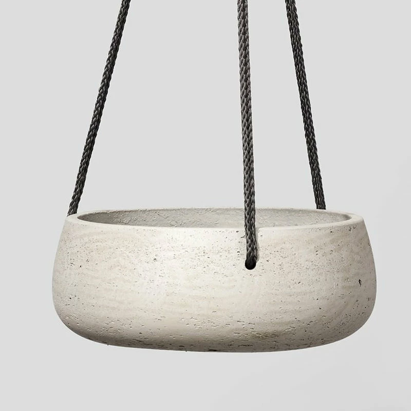 Serene Spaces Living Dark Gray Round Cement Hanging Planter, Large