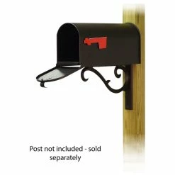The Standard Upscale Mailbox and Sorrento mounting bracket combination presents a upscale option for the typical wood post curbside mailbox. This heavy-duty galvanized steel mailbox has a durable ribbed body for extra strength and features a rust resistant powder coat finish for lasting durability and stylish curb appeal. The Sorrento mounting bracket is an elegant cast aluminum scroll that will give a high class, decorative appearance to your mailbox. Mailbox and mailbox mounting bracket included. This set does NOT include a post as it is intended to be mounted on an existing wood post or solid surface, or a new wood post that can be purchased separately. Mounting hardware is included.