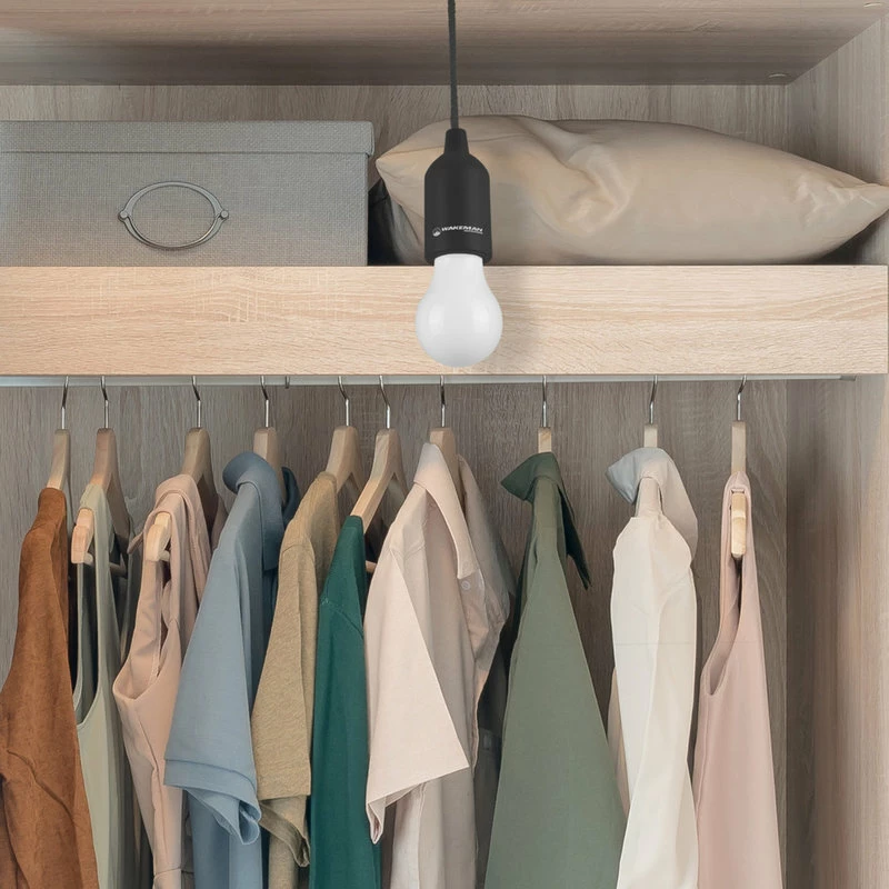 MULTIFUNCTIONAL LIGHT- The Wakeman Outdoors Pull Cord Light features a 42 inch long cord, making it a simple and versatile lighting option for a variety of uses. Ideal for closets, tents, camping, patios, garages, sheds, lofts and any other poorly lit areas in your home.