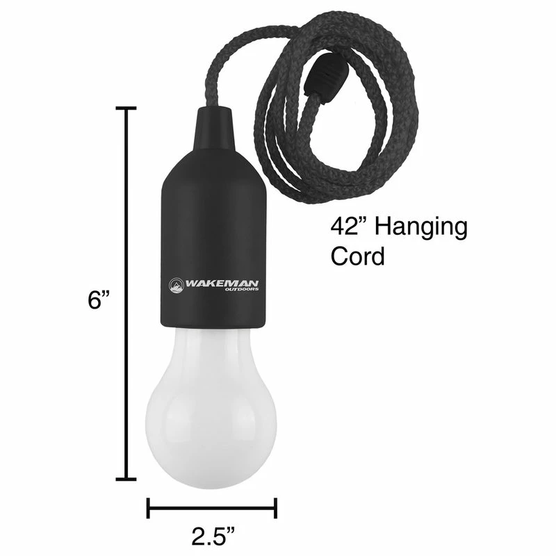 Brighten up any dark spaces in your home, garage, or even your tent with the LED Pull Cord Light by Wakeman Outdoors. Offering a functional 42 cord and constructed with water resistant materials, this lightweight bulb can provide the lighting you need, right where you need it. This lamp is the perfect choice for your outdoor needs like camping, hiking, garages, and patios, and is also great as an indoor light for closets, attics, lofts and more!