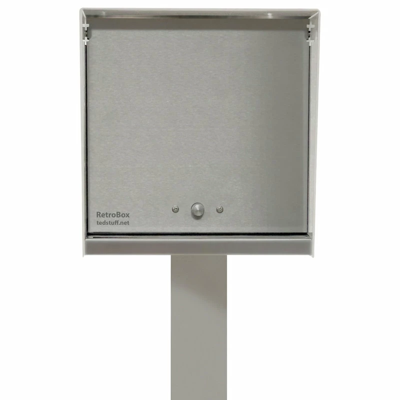 - Each Retrobox body is made out .125” 5052-H32 aluminum, powder coated with marine grade paint and custom anodized doors and number backings. The base is made out of 18 gage #4 finish stainless steel.