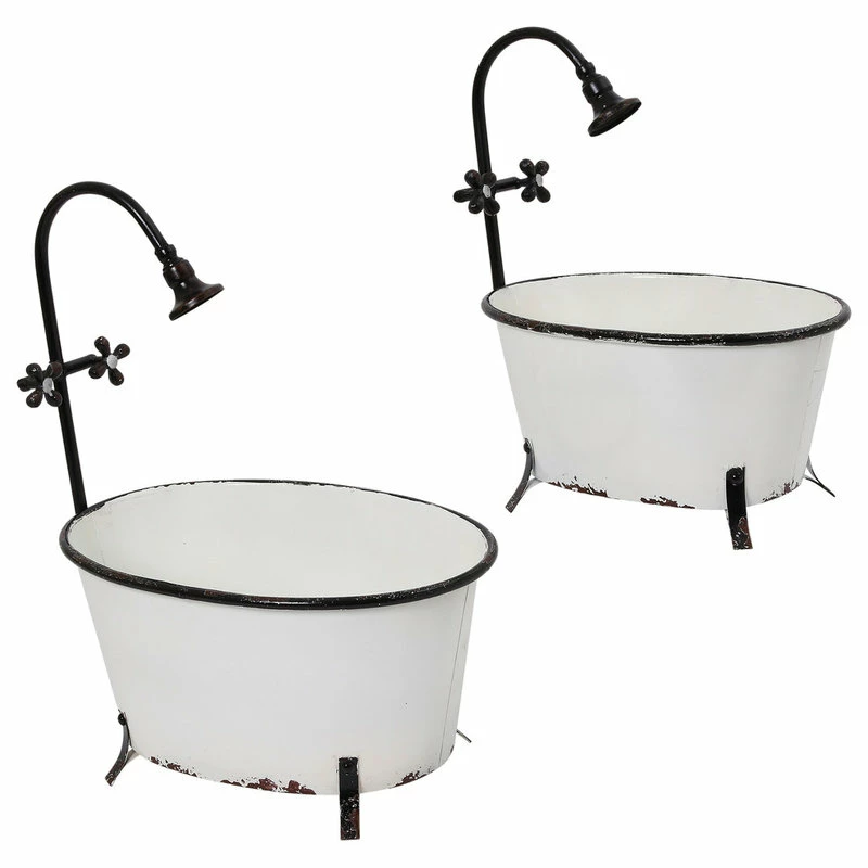The Gerson Company Assorted Antique-Style Metal Bathtub Planters With Faucet Accent, Set Of 2